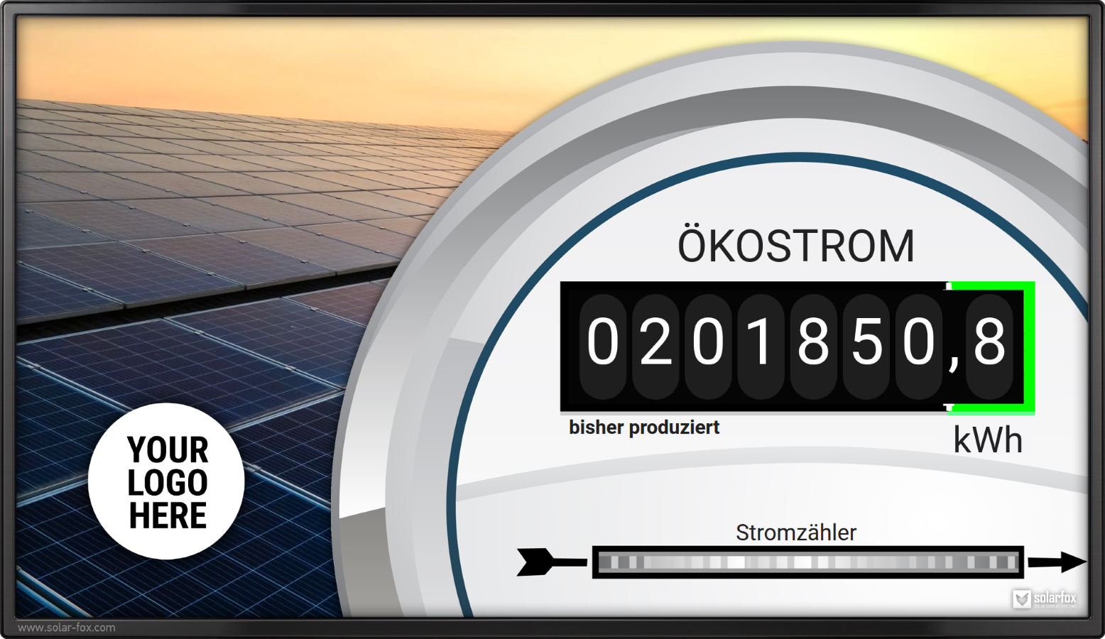 Bisher erzeugter Solarstrom (seit Inbetriebnahme der PV- Anlage) mit animiertem Zähler