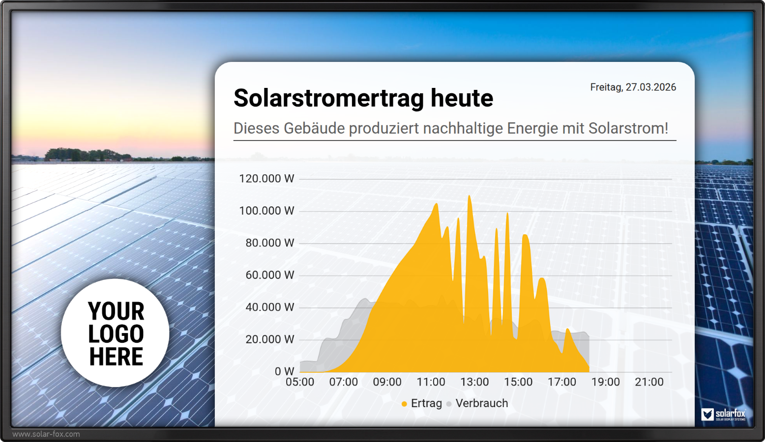 Zeigt eine Tagesansicht des Stromertrages und optional den Stromverbrauch des Gebäudes