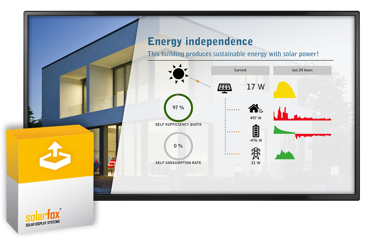Solarfox-Displays können die Daten von dem VoltStorage Batteriesystem abrufen und visualisieren. Mit einem geeigneten Webportal können Eigentümer von Photovoltaikanlagen/Batteriesystem ihre Energieerzeugung und den Systemstatus überwachen.